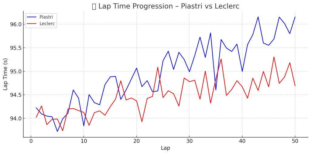 ๐ 6. Lap Time Progression โ Piastri vs Leclerc
